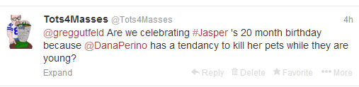 Today on "The Five" during the "One More Thing" segment Dana Perino celebrated her dog Jasper's 20 month birthday. The rest of the cast complained this wasn't a "Real" birthday.